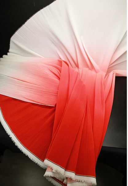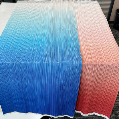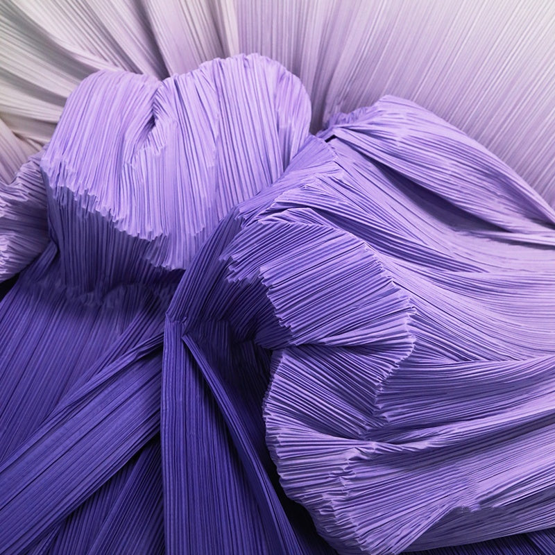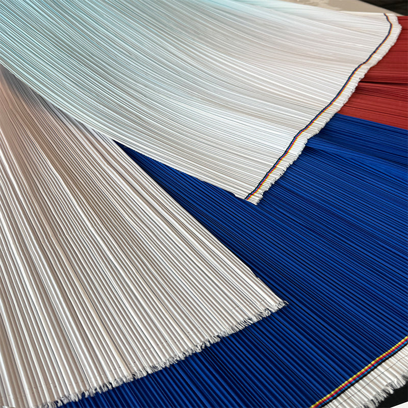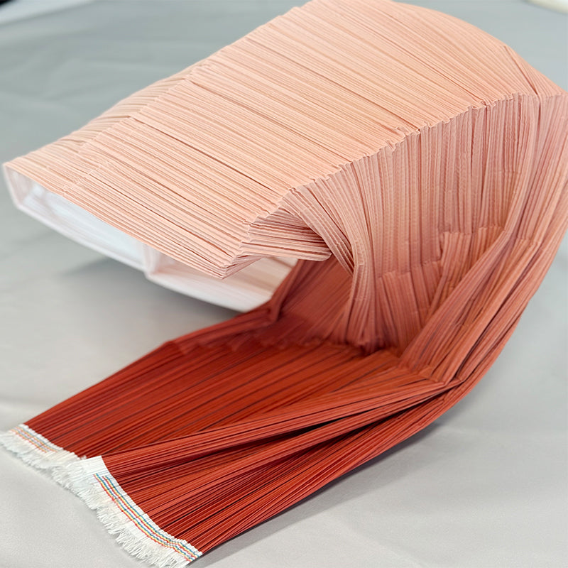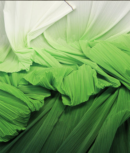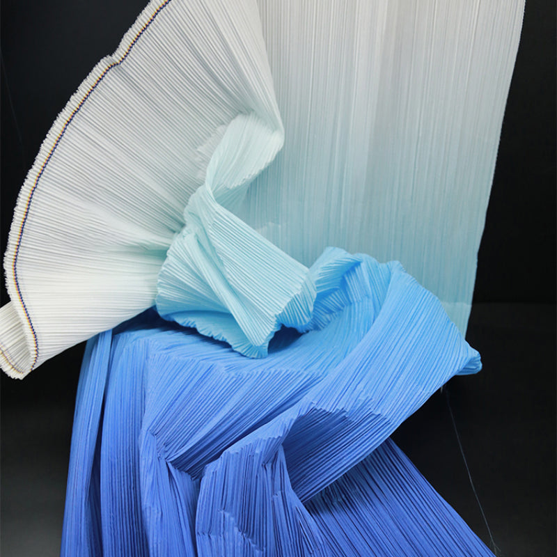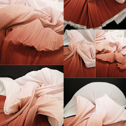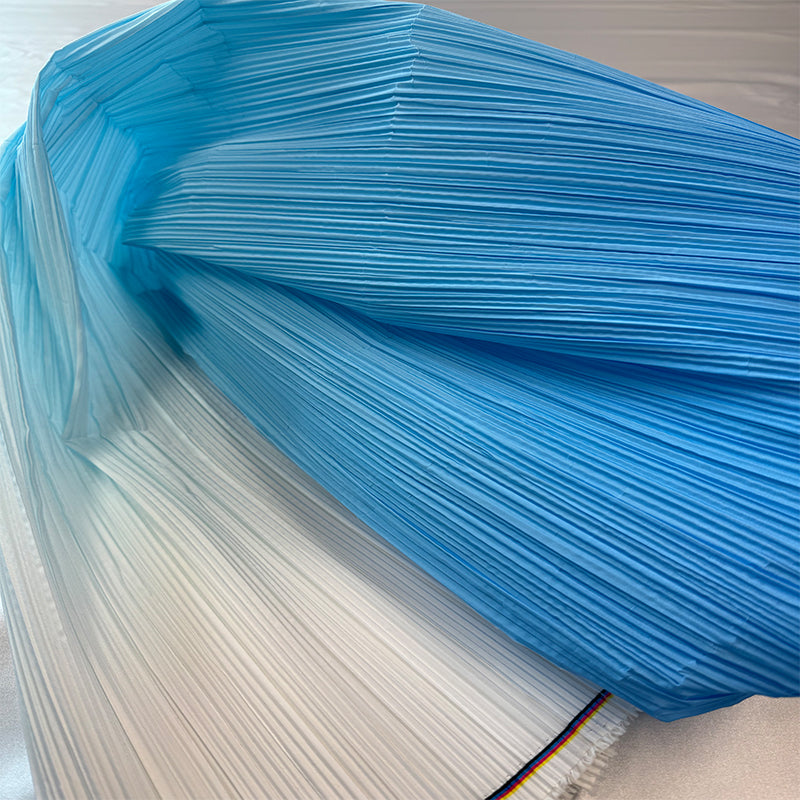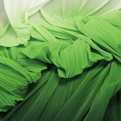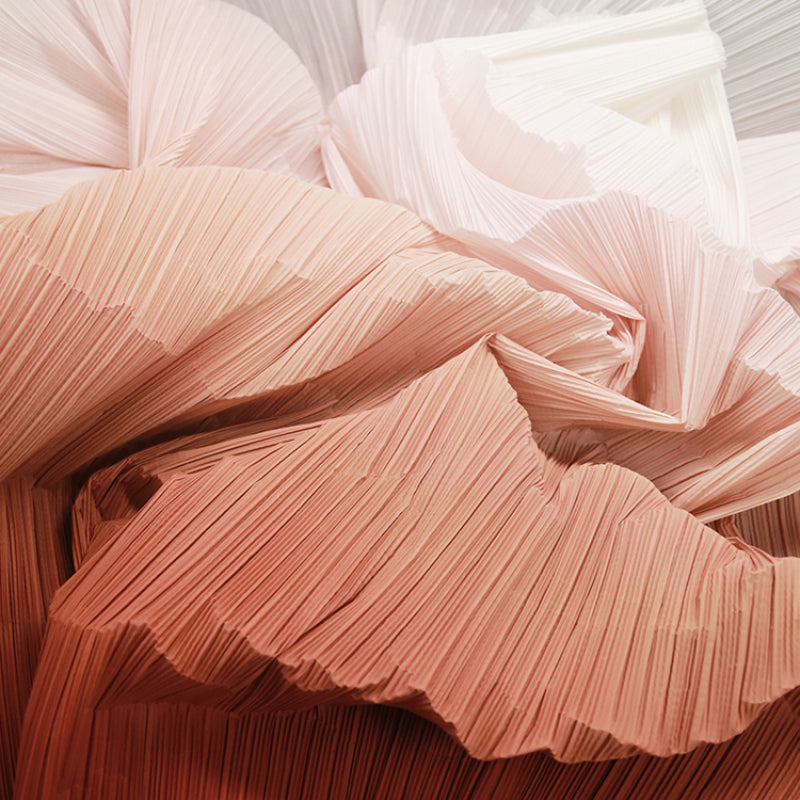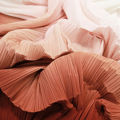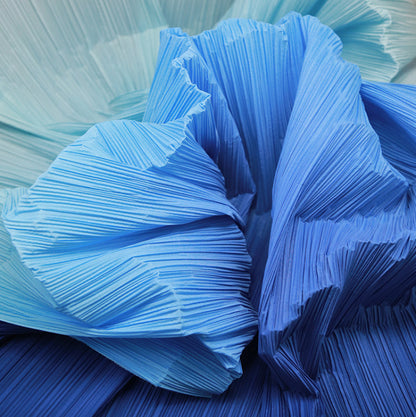 This fabric is defined by its intricate, uniform pleats that lend it a structured yet flowing texture, with a lightweight, airy quality that holds shape beautifully. Its surface carries a subtle, luminous sheen—catching light to accentuate the depth of its folds, whether in soft gradients or solid tones. The material balances flexibility and crispness, making it ideal for dynamic decor pieces: from layered event backdrops and voluminous fabric installations to delicate, textured styling elements.