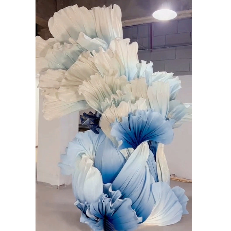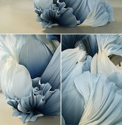 The pleated gradient white-blue textured background decoration is a beautifully designed ornament that showcases mesmerizing pleats with a gradient effect. This decoration features alternating white and blue colors, adding elegance and a modern touch to any space. Suitable for various occasions such as weddings, parties, festive celebrations, it creates a unique and impressive ambiance for your events.