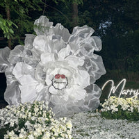 Add an elegant touch to your wedding or event with Flowerva Handmade's Giant White Flower arrangement. Handmade with the finest fabric, this stage background decoration will create a luxurious and exclusive atmosphere. Let this giant flower be the highlight of your special occasion!