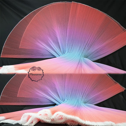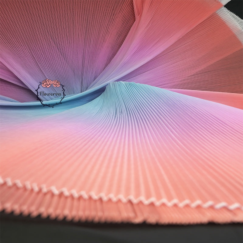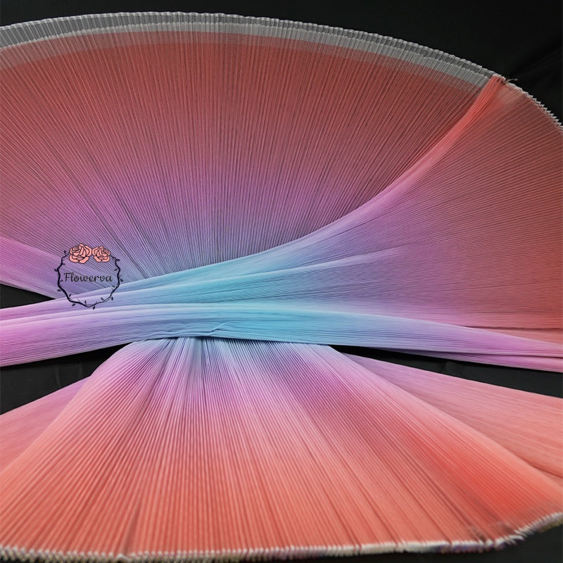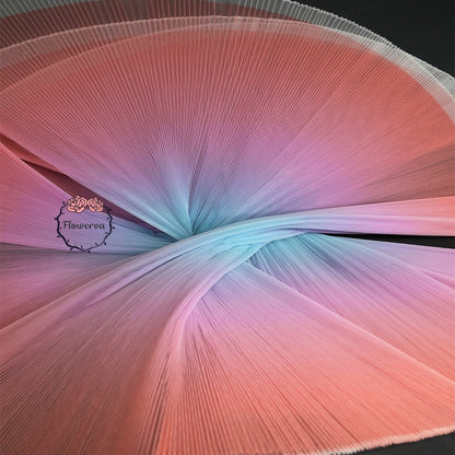 Gradient Orange Blue Pleated Organza Crinkle Fabric With Rigid And Wide Trim Stage Handmade Dress Designer Fabrics