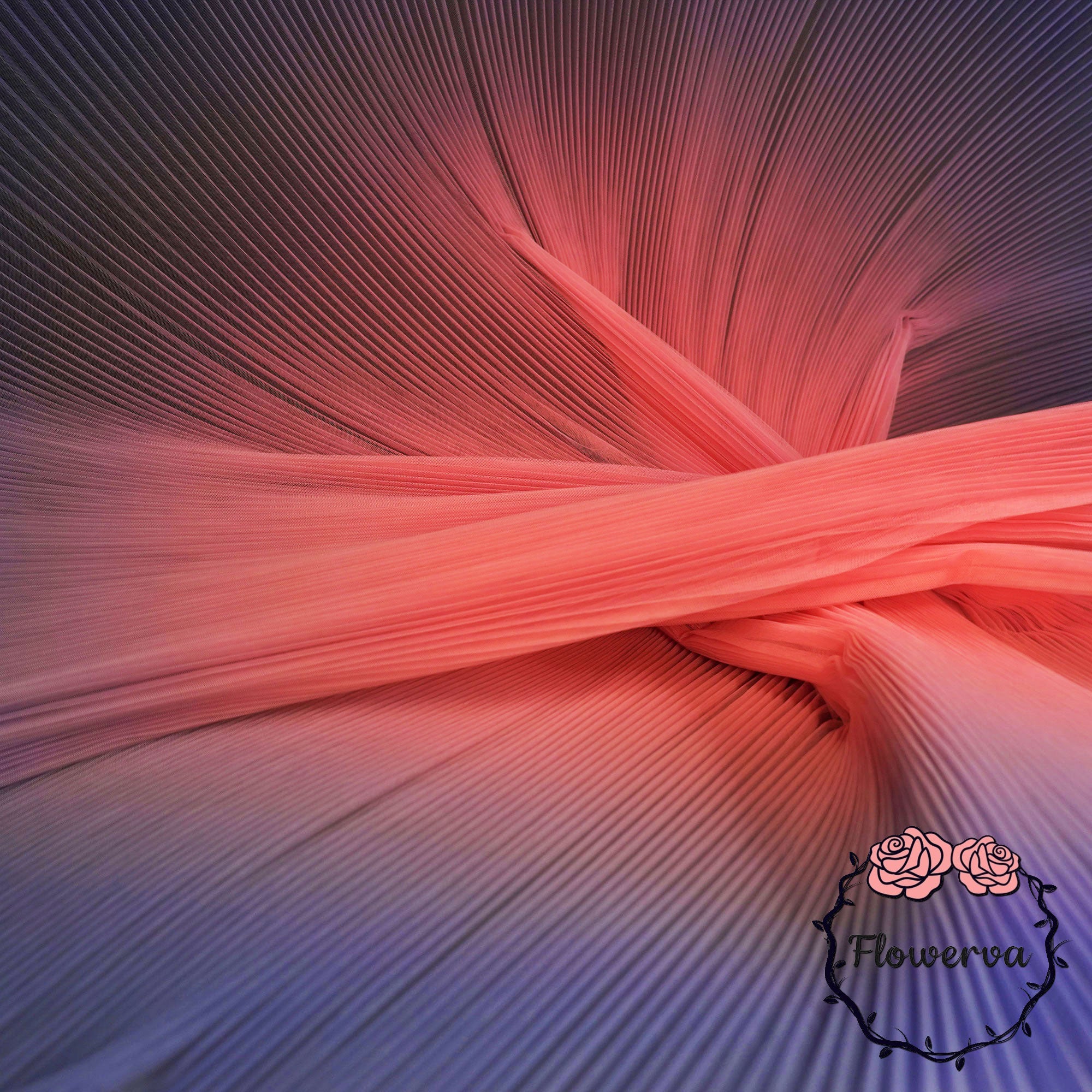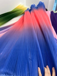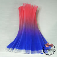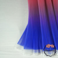 Gradient Red And Blue Pleated Organza Crinkle Fabric With Rigid And Wide Trim Stage Handmade Dress Designer Fabrics