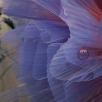 This fabric boasts a lightweight, airy texture with crisp, uniform pleats that hold shape beautifully while maintaining soft movement. Its surface carries a subtle, gentle sheen that catches light along the edges of each fold, enhancing the material’s layered, dimensional appearance—regardless of its color tone. The pleated construction balances structured fullness with a delicate drape, making it ideal for creating voluminous, flower-like silhouettes (as seen here) or other sculptural decor pieces.