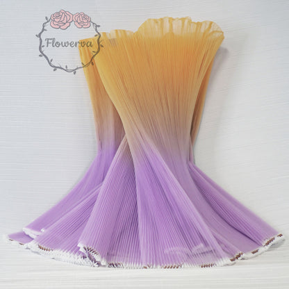 Gradient Yellow And Purple Pleated Organza Crinkle Fabric With Rigid And Wide Trim Stage Handmade Dress Designer Fabrics