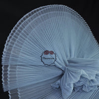 This fabric showcases a refined, versatile texture defined by delicate, structured pleats that add depth and movement to its appearance. Its lightweight, airy material carries a subtle, luminous sheen, which catches light gently to enhance the softness of its finish—whether in bold or muted tones. The fabric balances flexibility and shape retention, making it ideal for crafting dynamic decor pieces: from cascading event backdrops and voluminous fabric accents to delicate, layered styling elements.