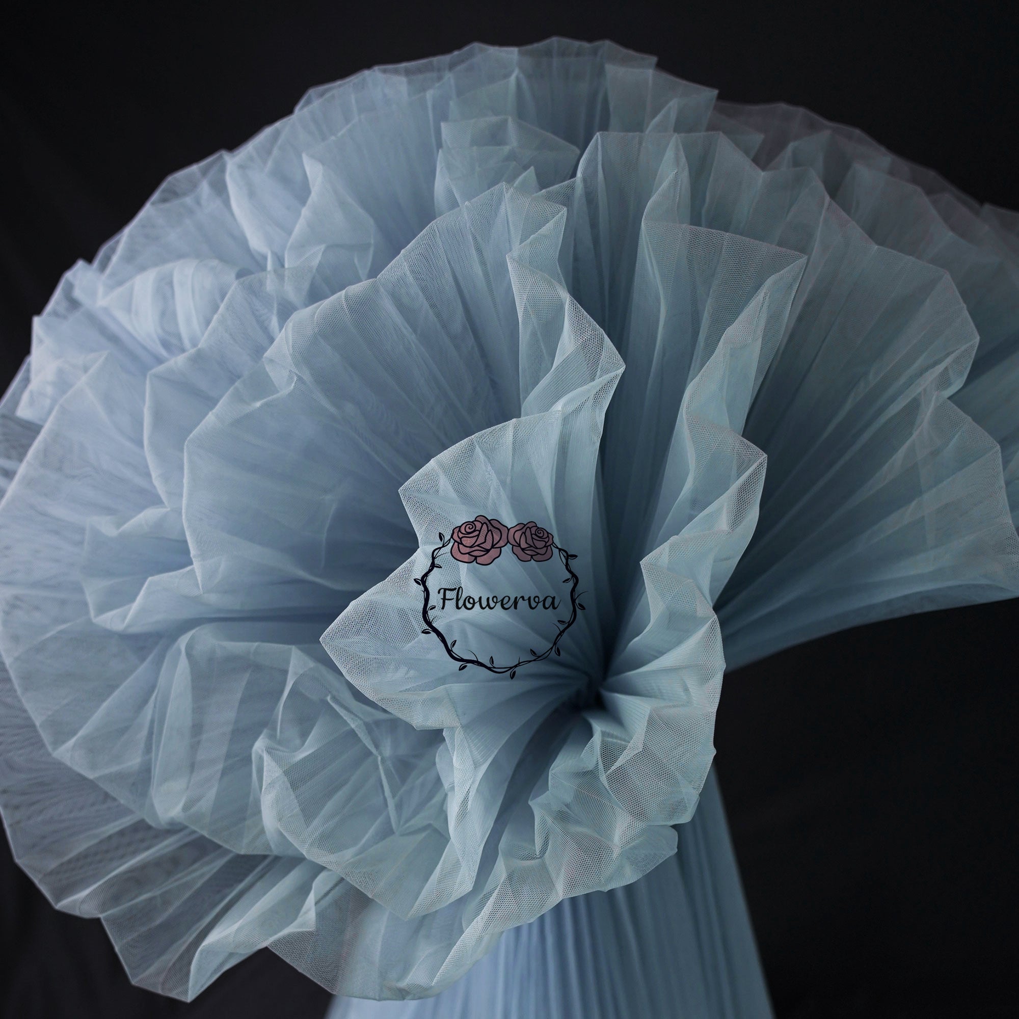 Flowerva Grayish Blue Great Pleated Organza Crinkle Fabric 6324