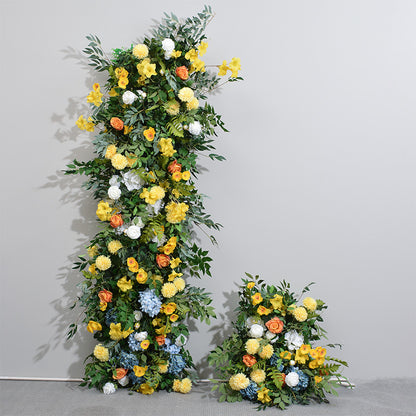 Add a touch of elegance to your wedding decor with this carefully designed Green Plant Yellow New Flower Row Window Exhibition Hall Display Flowers Wedding Acrylic Background Plate Decoration.
