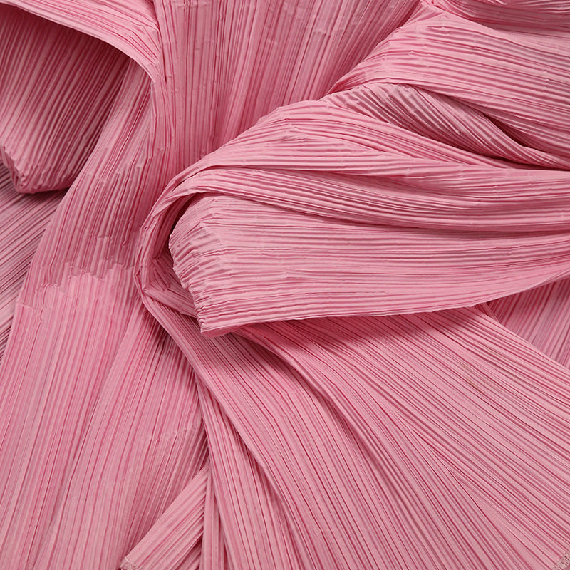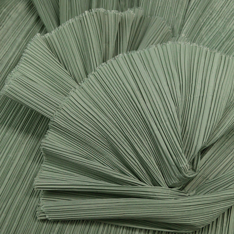 This fabric is characterized by its crisp, evenly spaced pleats that create a structured yet fluid texture, with a smooth surface that carries a subtle, refined sheen—catching light to highlight the clean lines of its folds, regardless of tone. The material feels lightweight yet durable, retaining its tailored shape while offering gentle movement, making it ideal for versatile decor pieces: from sleek event backdrops and layered fabric accents to polished table styling elements.