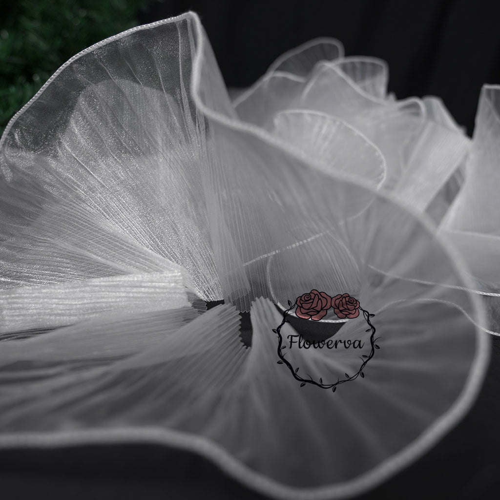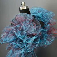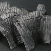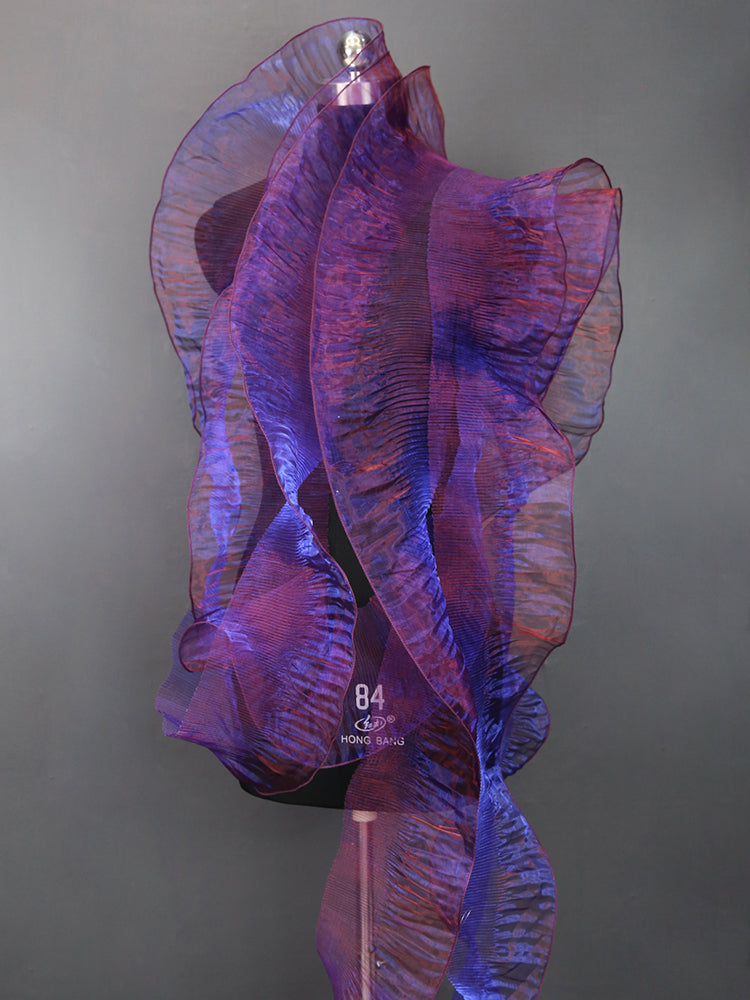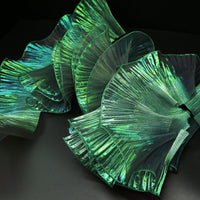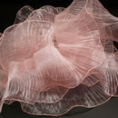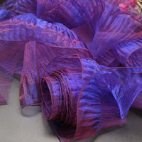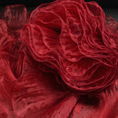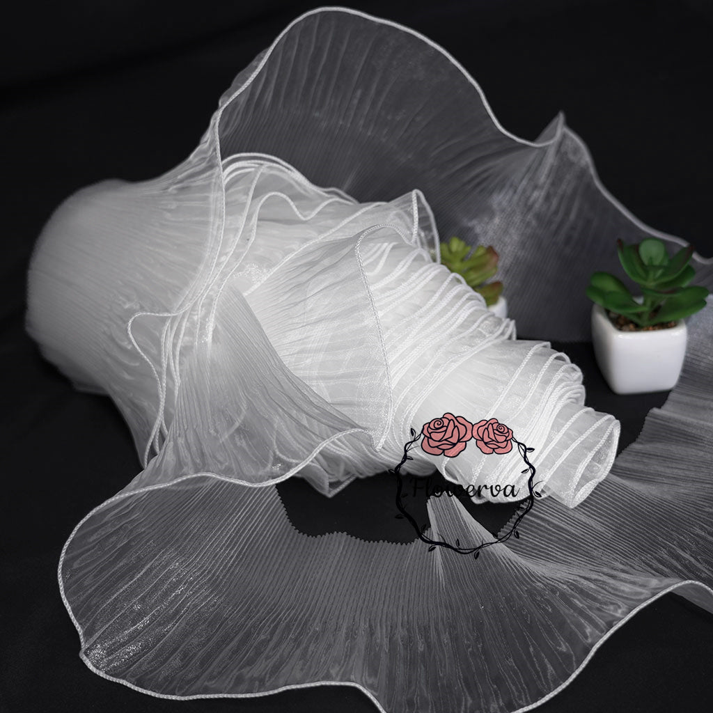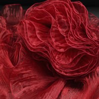 This fabric features a lightweight, airy texture with crisp, fine pleats that hold shape vividly while maintaining soft, dynamic movement. Its surface carries a distinct iridescent or luminous sheen—catching light to shift tones along the folds, enhancing the material’s dimensional, almost ethereal quality (regardless of base color). The pleated construction balances structured fullness with delicate flexibility, making it ideal for sculptural, flower-like installations or flowing, textured decor pieces.