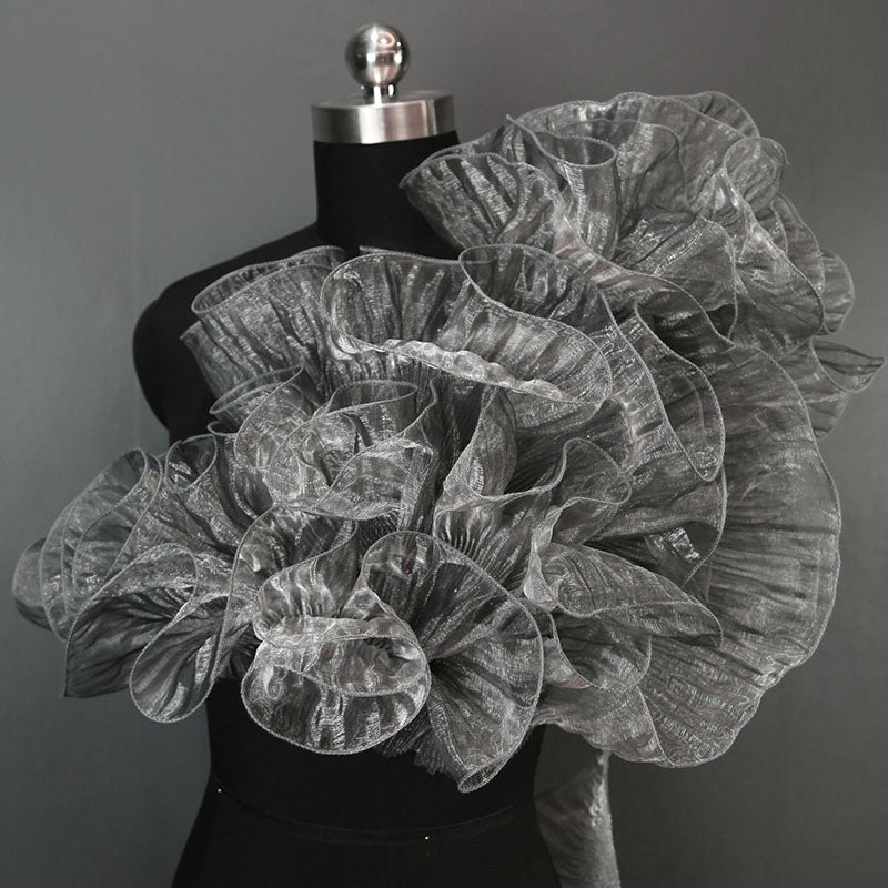 Large Wave Transparent Pleated Lotus Edge Wedding Dress Decorative Fabric