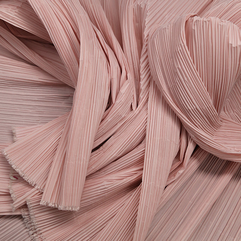 This fabric is characterized by its crisp, evenly spaced pleats that create a structured yet fluid texture, with a smooth surface that carries a subtle, refined sheen—catching light to highlight the clean lines of its folds, regardless of tone. The material feels lightweight yet durable, retaining its tailored shape while offering gentle movement, making it ideal for versatile decor pieces: from sleek event backdrops and layered fabric accents to polished table styling elements.