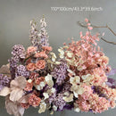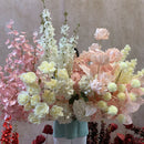 Experience luxury at your wedding with our Flowerva 30cm Rose Babysbreath Table Center Piece. Featuring premium pink hydrangeas and palm hyacinth, this arrangement exudes sophistication and elegance. Perfect for adding a touch of class to your special day.