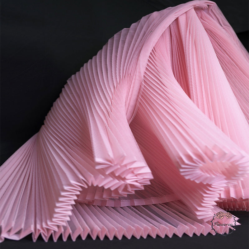This fabric showcases a refined, versatile texture defined by delicate, structured pleats that add depth and movement to its appearance. Its lightweight, airy material carries a subtle, luminous sheen, which catches light gently to enhance the softness of its finish—whether in bold or muted tones. The fabric balances flexibility and shape retention, making it ideal for crafting dynamic decor pieces: from cascading event backdrops and voluminous fabric accents to delicate, layered styling elements.
