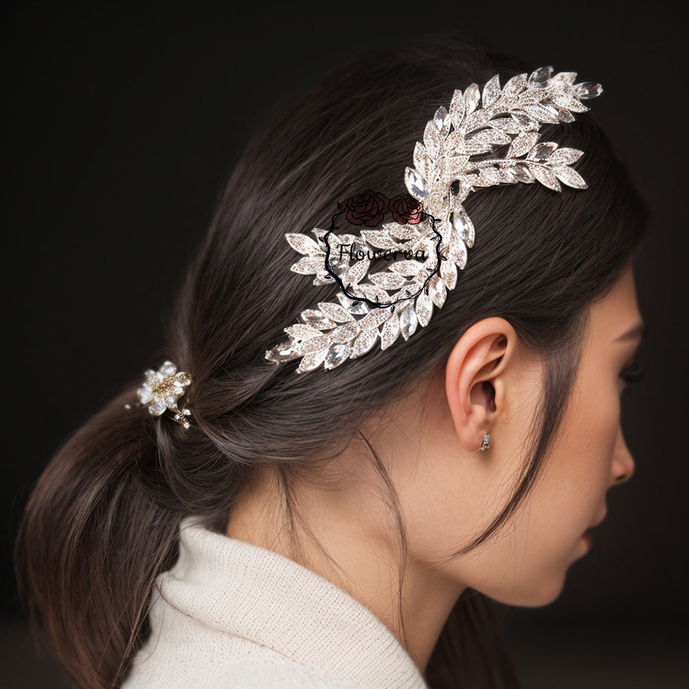 Flowerva Romantic Temperament Silver Wings Wing Hair Side Shape Headdress