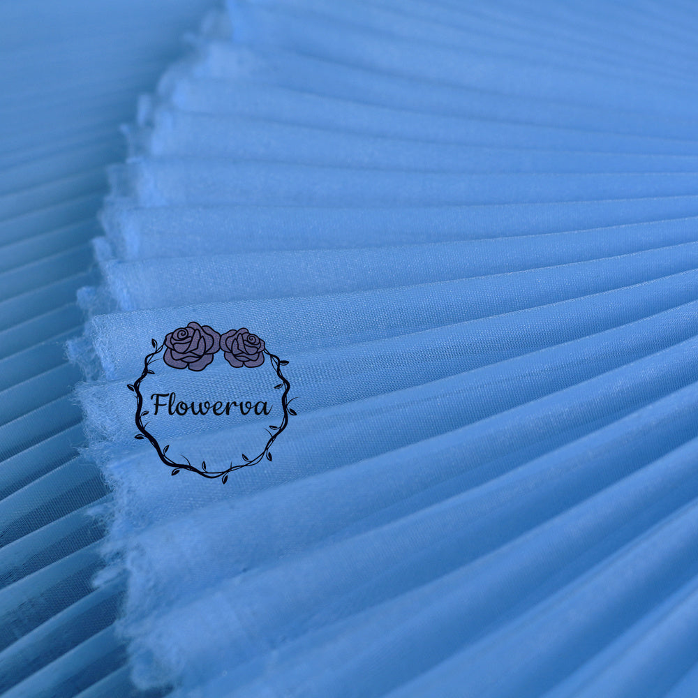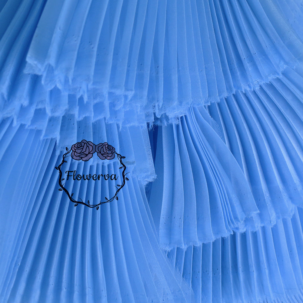 Flowerva Sky Blue Soft Silk Wrinkled Organza Wedding Styling Decoration Stage Handmade Dress Designer Fabric