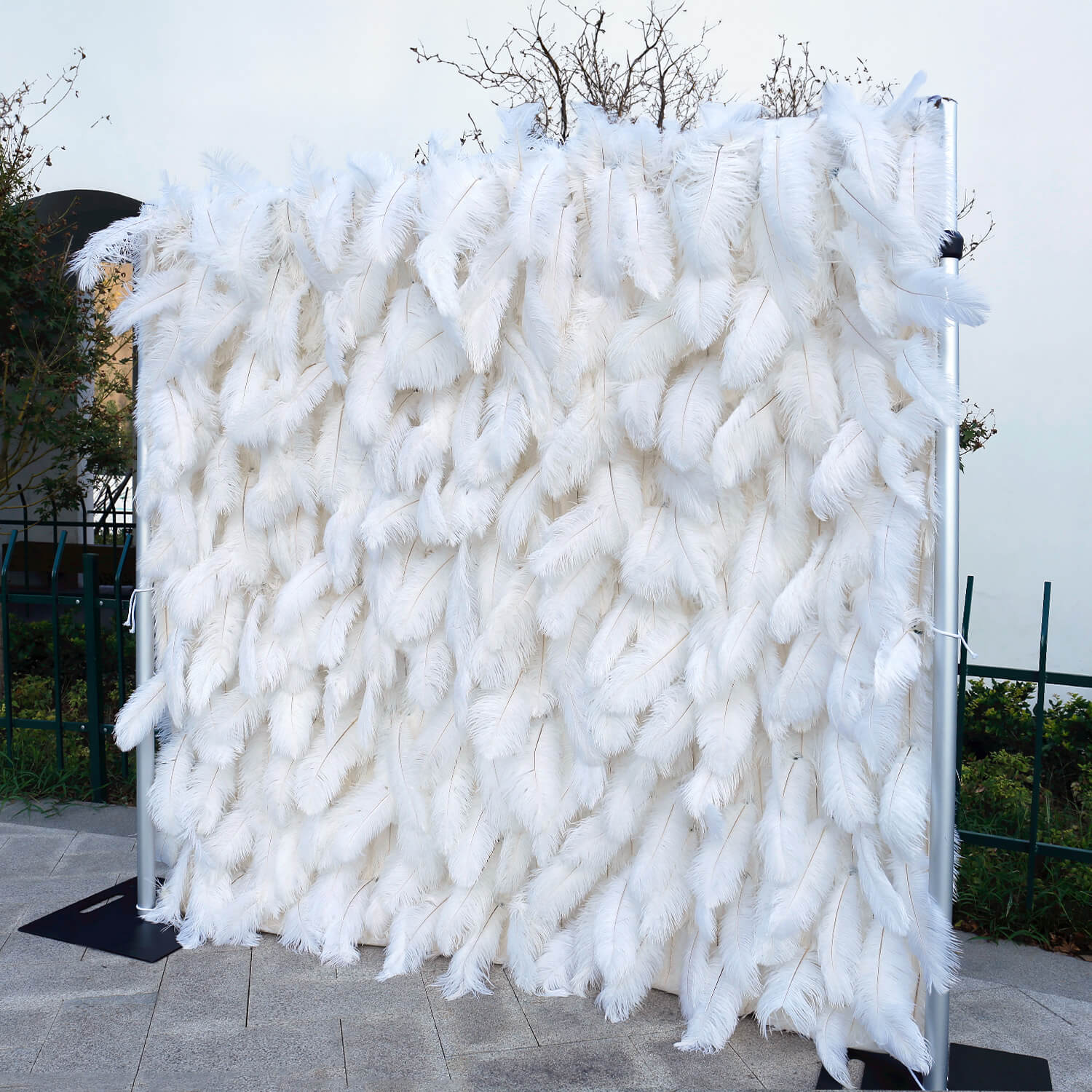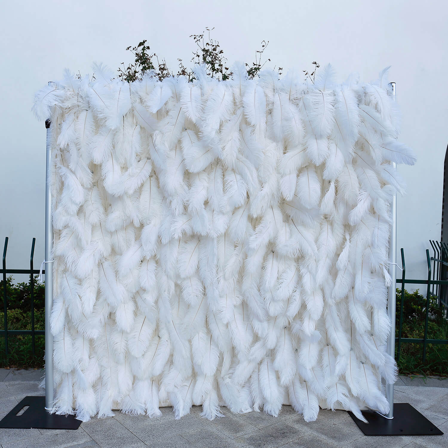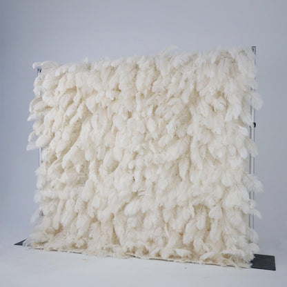 Flowerva Bohemian-Inspired White Feather Flower Wall for Wedding Backdrops