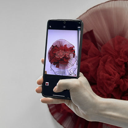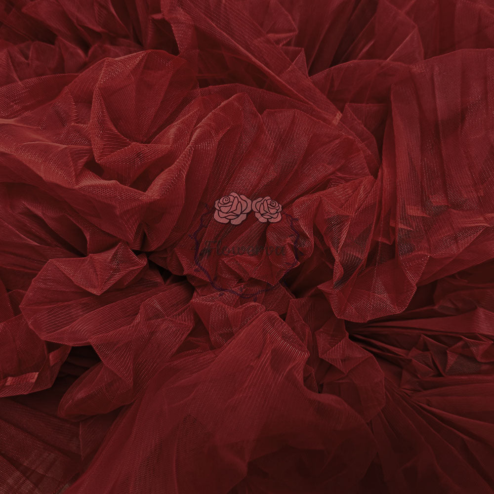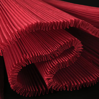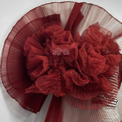 This wine red pleated fabric is artfully arranged in a large bouquet design, evoking a sense of luxury and sophistication. Perfect for adding an elegant touch to any room or outfit, this unique piece combines beauty and functionality, making it a must-have for any discerning individual.